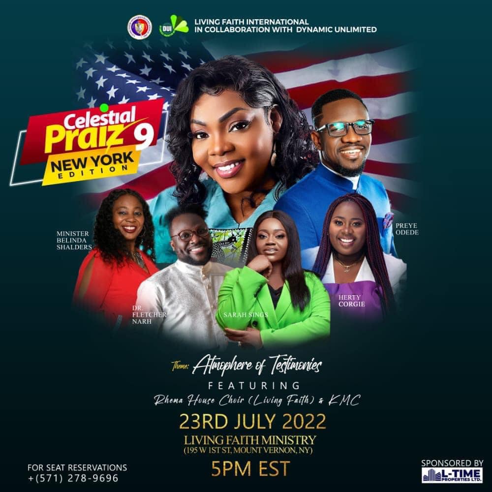 Celestial Praiz is set to continue in NewYork (USA) at the Living Faith Ministry 195W, 1st St, Mount Vernon, NY, with special ministration from Nigeria’s very own Preye Odede, USA based Ghanaian gospel singer Herty Corgie, Dr Fletcher Narh and Sarah Sings.