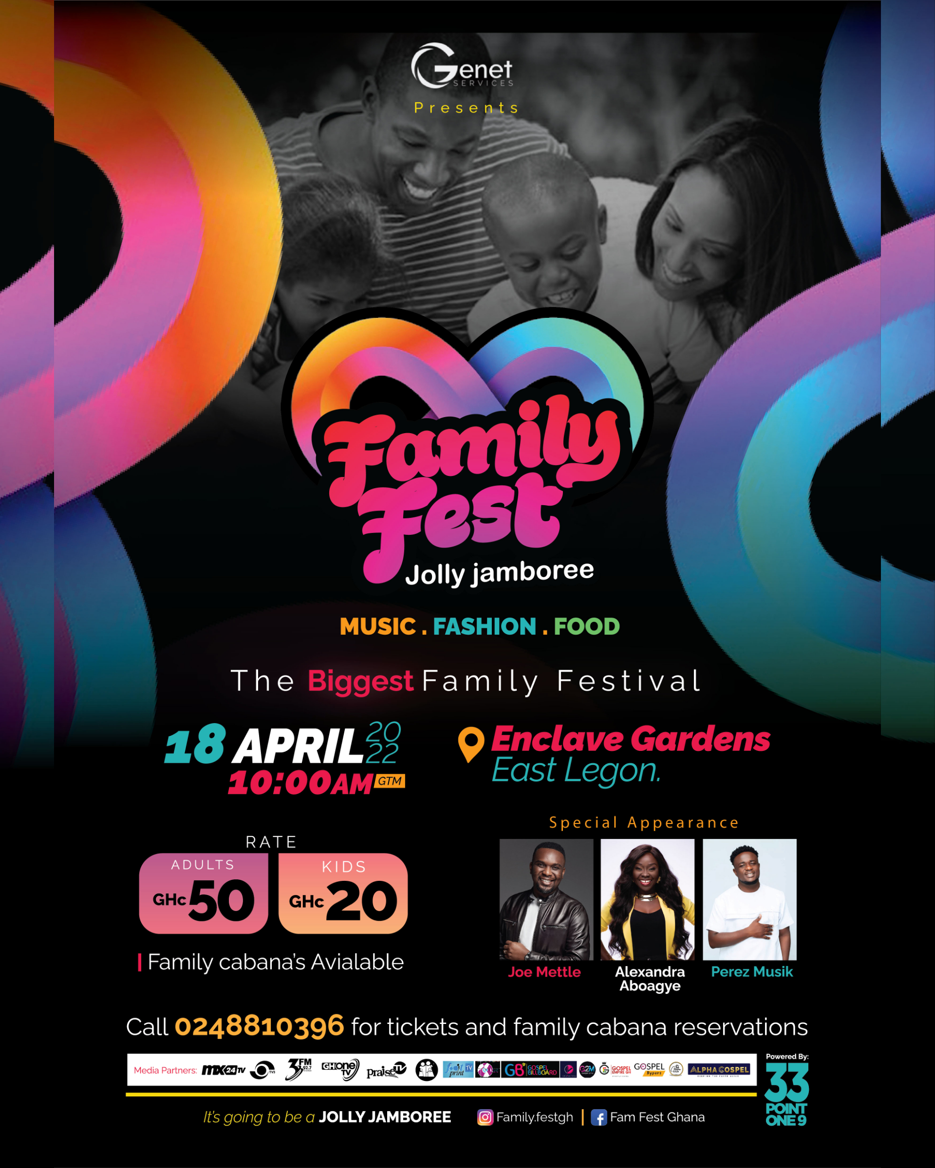 Genet Services, organizers of Women in worship unveils another exciting and fun Easter Monday event “Family Fest” the maiden edition, and have revealed this year’s performers for the event Joe Mettle, Celestine Donkor, Akesse, Perez Musik & Alexandrah slated for 18th April, 2022.